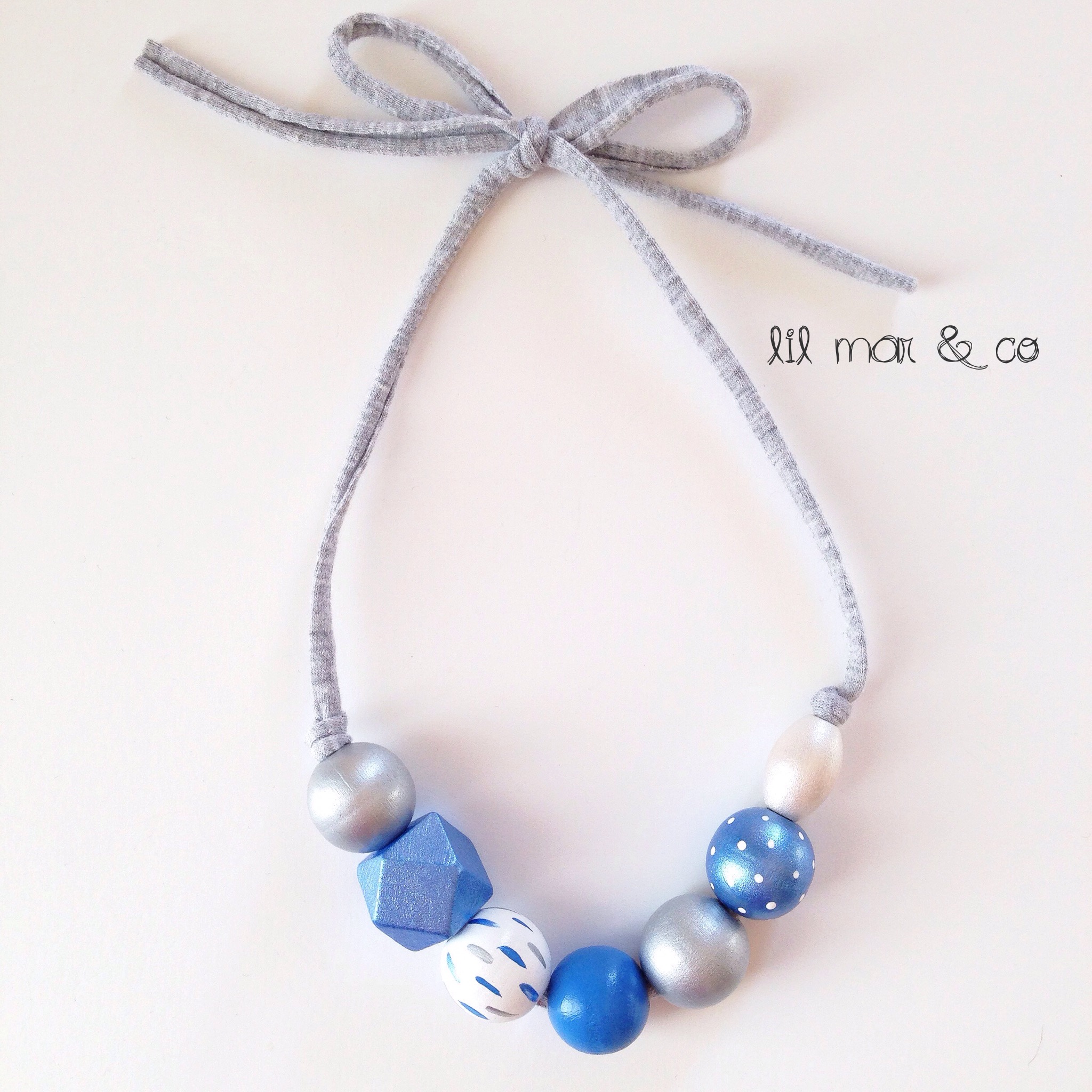 This sweet comfy necklace is made with hand painted wood beads and soft knit fabric. Each bead is carefully painted with several coats of non toxic paint and sealed with a non toxic ~ water based sealant. The necklace measures approximately 31" in length and can be customized to fit small girls to adult by tying in a bow or knot. This necklace is lightweight to ensure lots of comfortable wear. The necklace is a perfect statement piece to any outfit from graphic t-shirt to a fancy dress.